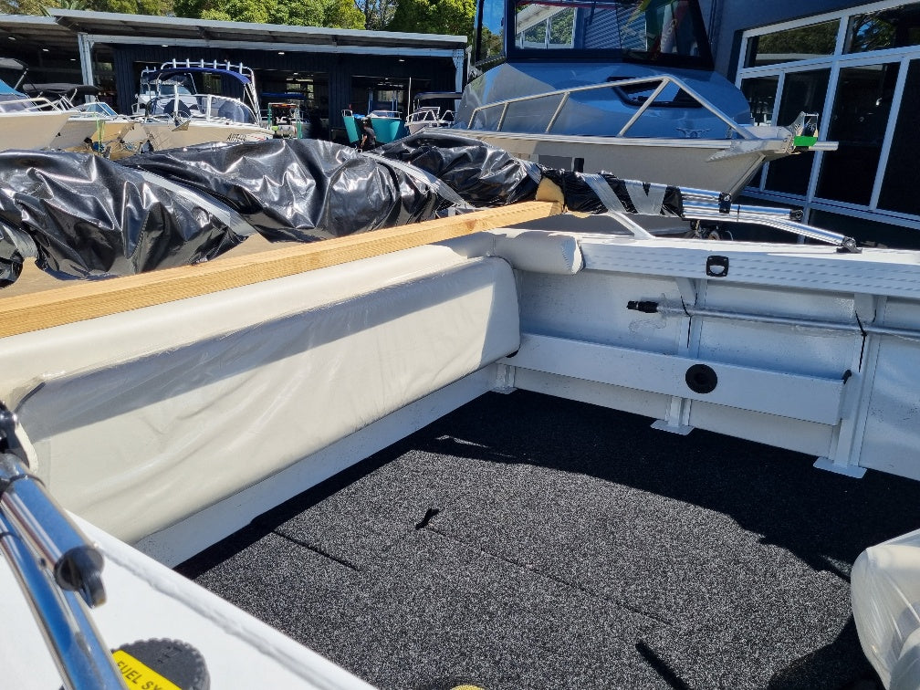 2023 YAMAHA 40HP 4 STROKE 41 HOURS. 2018 TELWATER ALLOY TRAILER. 1994 Quintrex 420 Breezeabout powered by a 2023 Yamaha 40hp 4 stroke with only 41 hours use all fitted on a 2018 Telwater alloy trailer with spare wheel Features include Canopy, Raymarine Dragonfly 4" Sounder / GPS with maps, 6 Rod holders, Navigation lights, Bilge pump, Windscreen grabrail, Side pockets. All of our used boats are thoroughly checked before trade in and we service the motor and trailer before purchase. A 3 month warranty is included with all our used boats. Enclosed waters safety gear and balance of registrations included. Guaranteed title. This boat is on display at our Sydney store.