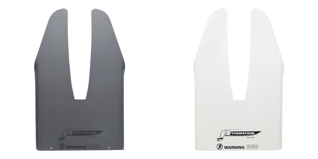 This is the Yamaha specific Permatrim section. They are available in Grey or White and there are 4 sizes to choose from: Small - Up to 25hp, Medium - 30 to 60hp (13 Spline Prop Shaft), Large - Over 60hp (15 Spline Prop Shaft) and Large for boats that are bigger than 6.5m. (The difference for boats over 6.5M is that they are the same size as the other Large except they mount under the cavitation plate instead of on top as otherwise there is to much stress on the cavitation plate and the bolt holes).