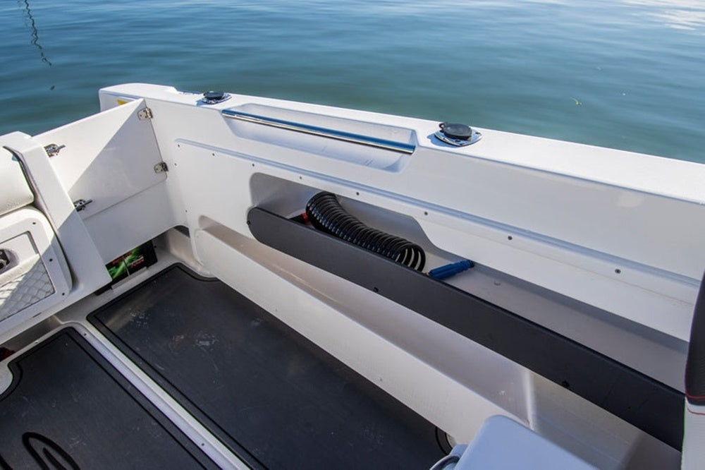 It features all the finishes and attention to detail our boats are known for with clever and thoughtful design elements such as fully moulded non-slip deck, large moulded side pocket area, large kill and bait tanks, optional side door, optional split bow rails and bait prep board, plus more, to make this a great all-round fishing boat with space and storage aplenty.