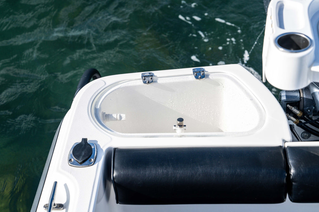 Finally, you may choose to include the best in class transducer option, with a pocket mounted, dual-frequency transducer moulded into the hull, giving the ability to read bottom and mark fish with incredible clarity in depths to 1200m.