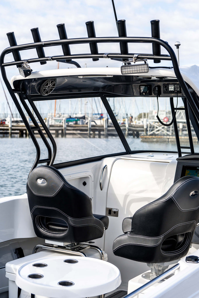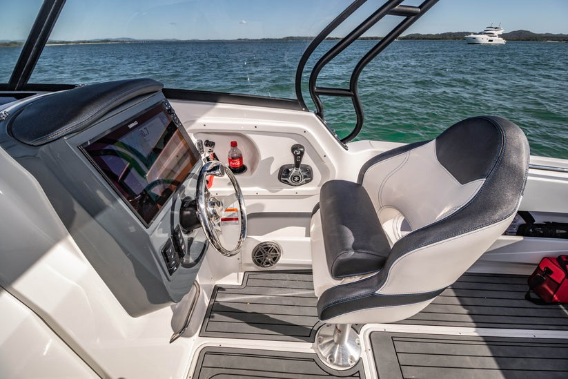 The new and improved dash layout can now handle up to a 16” GPS/sounder screens and comes with even more desired features in the standard package – including Garmin & Fusion Audio electronics featuring chartplotter/sounder, VHF, stereo and speakers ensuring an enjoyable experience, as well as a dual battery system with VSR standard giving you long range, trouble free boating thanks to automated battery charging.