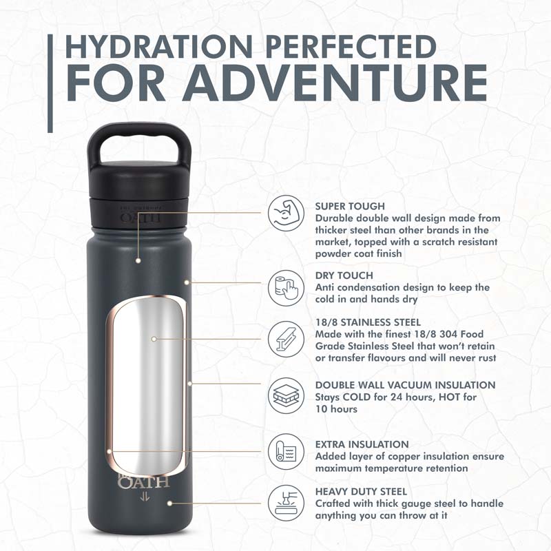 With its durable construction, superior vacuum insulation, and reliable design, the Outdoor Oath bottle isn't just a bottle - it's your hydration partner.