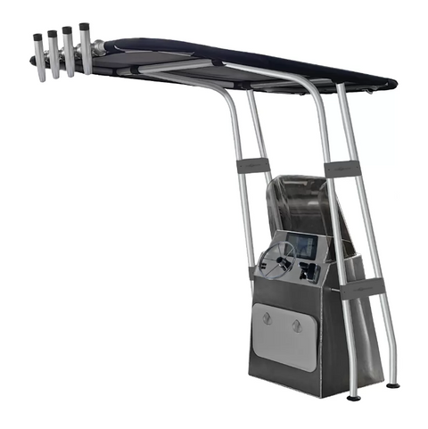 The Oceansouth Heavy Duty T Top has been redesigned to further improve performance and reliability. This is a heavy duty unit designed for larger console boats or people wanting something that will really handle the elements. It's 2.1m high and can be shortened to your required height if needed. The bimini canopy is made from a 600 denier polyester fabric and the tube size is 44mm polished aluminium and includes all the fittings you will need for complete easy installation. Fabric colour choices are Navy and Black. The dimensions of the T-Top fabric section is 2.00m long and 1.40m wide. The maximum width your console can be is 1.00m. See additional pictures for full dimensions.