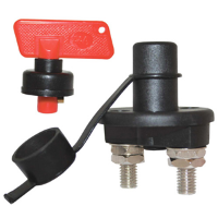 One of the most common battery switches on the market. All you do is turn the red key a quarter turn. Key pops out when turned off for security when your boat is unattended. Comes with a rubber boot for when not in use. Rated to 100amps continuous.