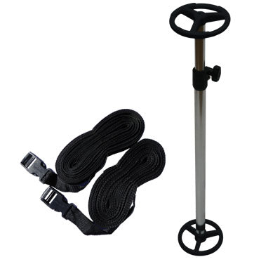 This would have to be the invention of the century. Finally someone has come up with a cheap and simple way to stop the water pooling in either the middle or the bow of your all over cover. They are telescopic from 710mm to 1220mm and come with 6" plastic circular ends to prevent any damage and 20mtrs of adjustable webbing if you need to anchor them in place. Most of the time you just extend them under the canopy and the tension will hold them there.