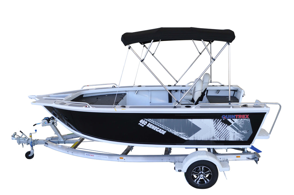 Discounted Captain Pack - Bimini and Envelope, 12v Outlet, Quintrex Seat Covers, Seat Upgrade to Bass Sport Seats, Half Wrap Stripe on Side