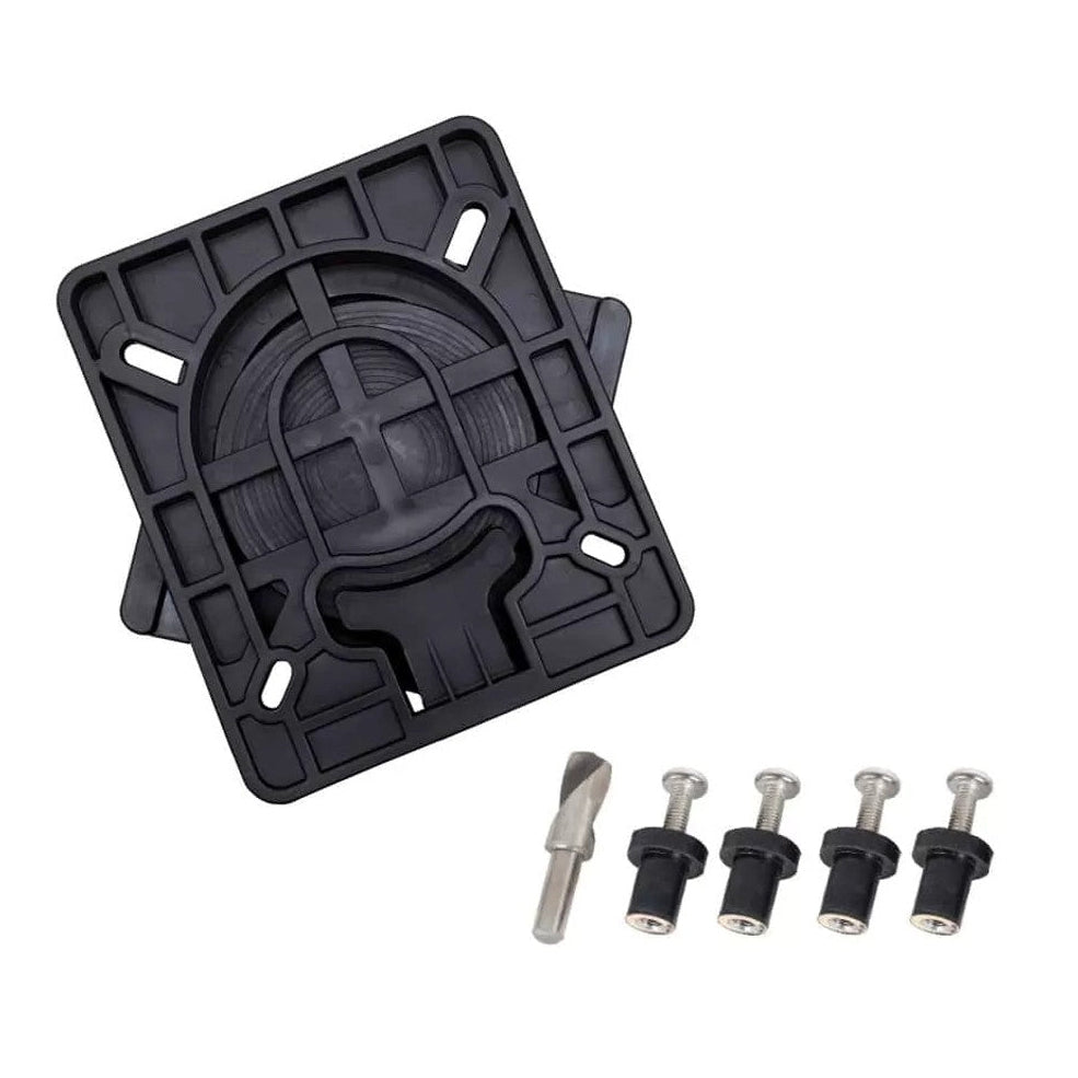 Each seat box includes a watertight floor (base footprint 440mm x 440mm) with 12 fastening points to mount securely to the deck of your vessel (12 × tapered stainless-steel screws included). The box also comes with a standard 7″ (177mm) black metal seat swivel (stainless-steel bolts to secure the swivel to the boat seat box included), making it compatible with all Oceansouth boat seats and most other marine seating brands.