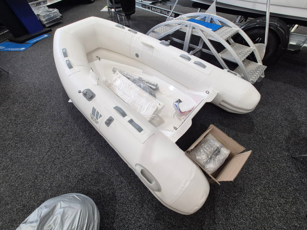 These HYPERLON Tiger Fiberglass RIBs are all brand new and are being sold on behalf of a business we do business with. The quality is impressive and all three sizes come with stainless steel lifting davit points, storage cover, oar system with oar locks and a pump. The 280 and 360 also come with the removable centre seat. Please do your homework as they are priced way way below any other competitor. We have 2 of the 260 models and one each of the 280 and 360. Dimensions, specs and pricing is as follows:
