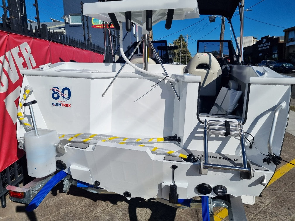 JUST ARRIVED, HOT OFF THE PRESS. Will be powered by a Yamaha 150hp 4 stroke with hydraulic steering and polished stainless prop all fitted on the Quintrex Tandem axle alloy trailer. Options fitted and included are: