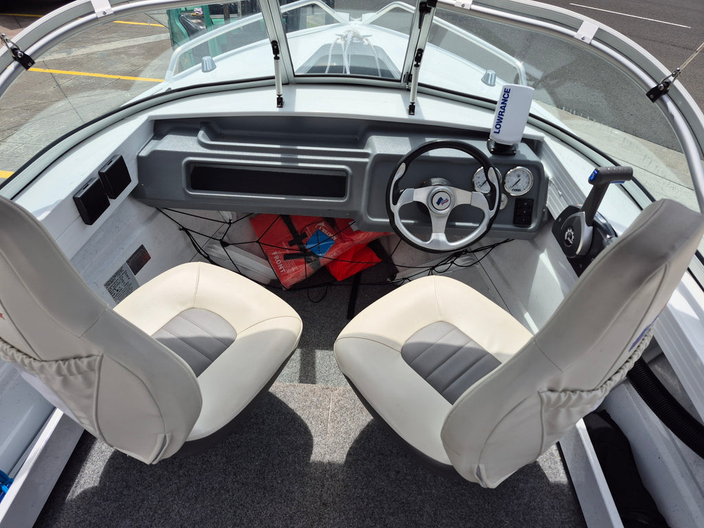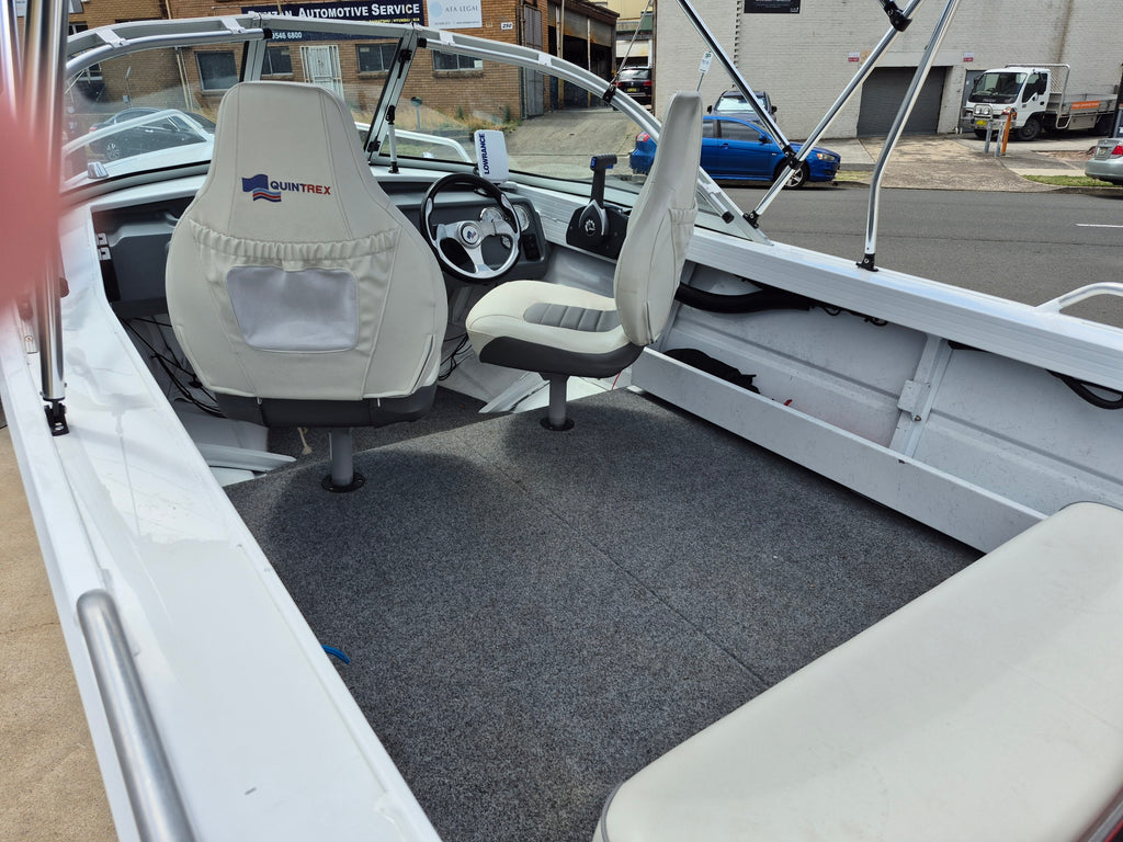 2023 YAMAHA 40HP 4 STROKE 41 HOURS. 2018 TELWATER ALLOY TRAILER. 1994 Quintrex 420 Breezeabout powered by a 2023 Yamaha 40hp 4 stroke with only 41 hours use all fitted on a 2018 Telwater alloy trailer with spare wheel Features include Canopy, Raymarine Dragonfly 4" Sounder / GPS with maps, 6 Rod holders, Navigation lights, Bilge pump, Windscreen grabrail, Side pockets. All of our used boats are thoroughly checked before trade in and we service the motor and trailer before purchase. A 3 month warranty is included with all our used boats. Enclosed waters safety gear and balance of registrations included. Guaranteed title. This boat is on display at our Sydney store.