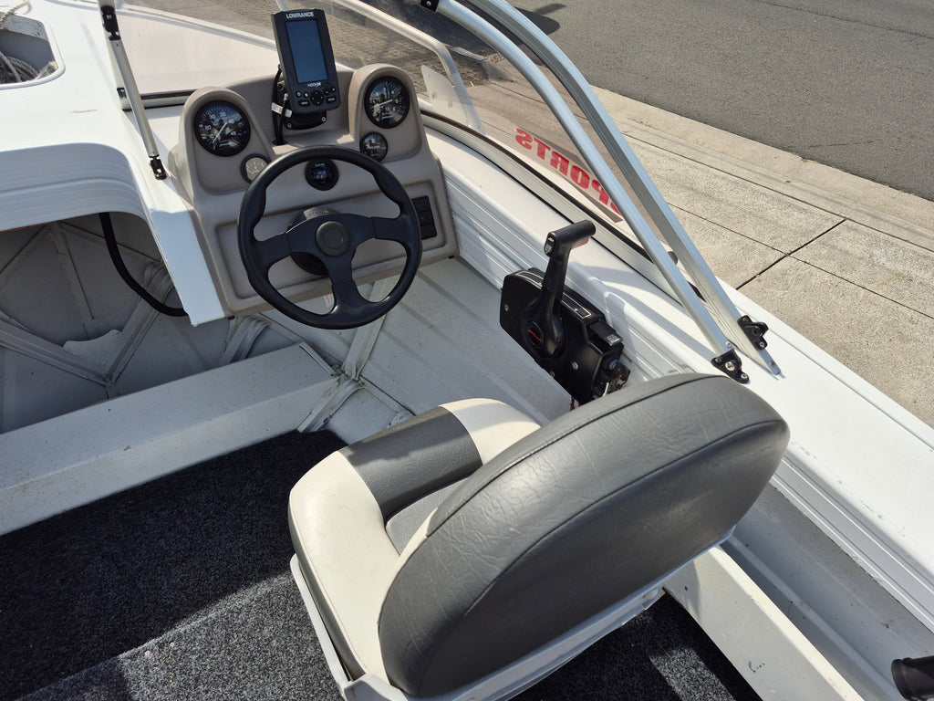 CHEAP RELIABLE RUNABOUT 2005 Stacer 460 Sunmaster Sports powered by a Mariner 40hp 2 stroke all fitted on a Dunbier gal steel trailer with Spare wheel and Walkway. Features include Lowrance Hook 4 Sounder, Rear boarding ladder, Bait cutting board, VHF Marine radio, Navigation lights, 4 Rod holders, Rod racks, Rear lounge, Bilge pump, Battery isolation switch. All of our used boats are thoroughly checked before trade in and we service the motor and trailer before purchase. A 3 month warranty is included with all our used boats. Enclosed waters safety gear and balance of registrations included. Guaranteed title. This boat is on display at our Sydney store.