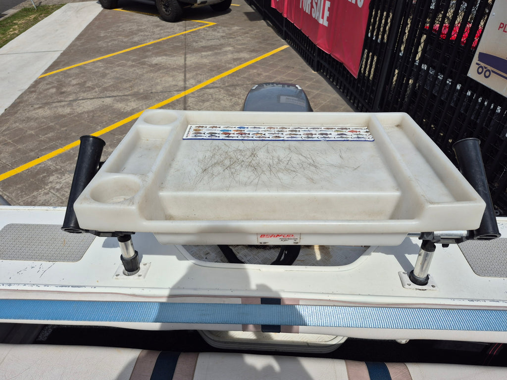 CHEAP RELIABLE RUNABOUT. YAMAHA OUTBOARD 2003 Stessco 445 Bull Eye runabout powered by a Yamaha oil injected 50hp two stroke all fitted on a Special gal steel trailer. Features include Bimini, Dual batteries, Garmin Fishfinder, Raymarine Fishfinder, Uniden VHF, Navigation lights, Compass, Anchorwell, 4 Rod holders, Bait cutting board, Rear boarding ladder, Berley bucket. All of our used boats are thoroughly checked before trade in and we service the motor and trailer before purchase. A 3 month warranty is included with all our used boats. Enclosed waters safety gear and balance of registrations included. Guaranteed title. This boat is on display at our Sydney store.