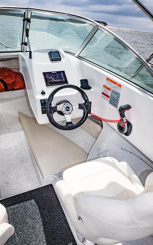 The 550BR can adapt to your choice of fishing or water sports and offers smooth control and superb handling for loads of fun – particularly when pulling the kids on a tube or skis, thanks to its tried and tested open water hull, so you can experience the thrill and rush of sports boat driving.