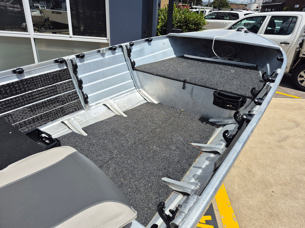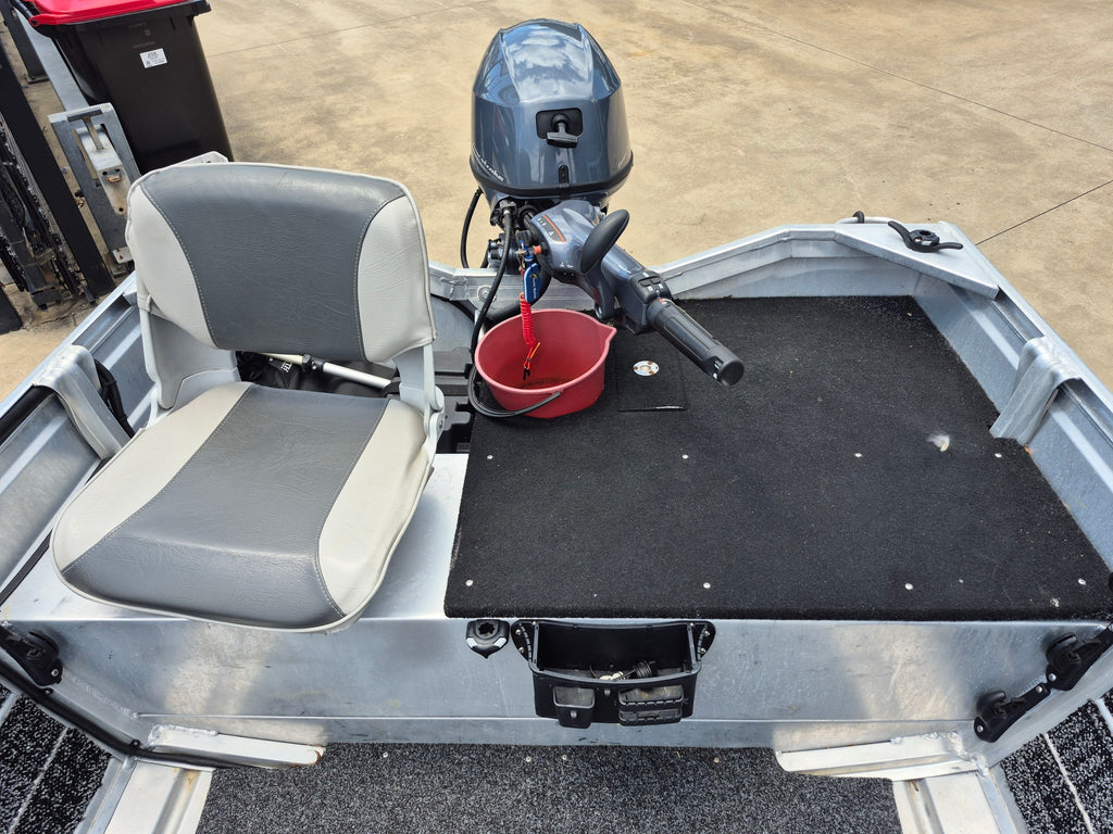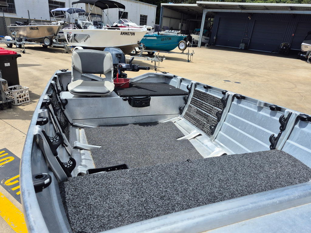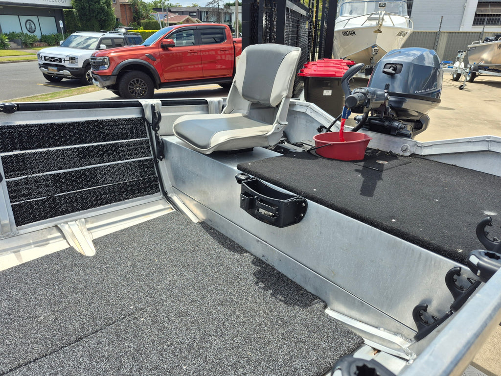 NEAR NEW. LOADED WITH EXTRAS 2024 Aquamaster 420 Tiller steer powered by a Suzuki 40hp 4 stroke outboard with electric start and power tilt all fitted on a Redco gal steel trailer with spare wheel. Features include MInn Kota 55lb I-Pilot with Heading sensor, Lowrance Hook 7 GPS / Sounder, Navigation lights, Compass, Bilge pump, Swich box and panel, Stand up U bar, Rod Racks, Stainless steel rod holders, Rail Blazer mounts, Transom step and rail, Front and rea casting platforms, Bow rails, Aft side trails, Side pockets, Anchorwell. Boat Motor and trailer still covered by manufacturers warranties. All of our used boats are thoroughly checked before trade in and we service the motor and trailer as necessary before purchase. Enclosed waters safety gear and balance of registrations included. Guaranteed title. This boat is on display at our Sydney store.