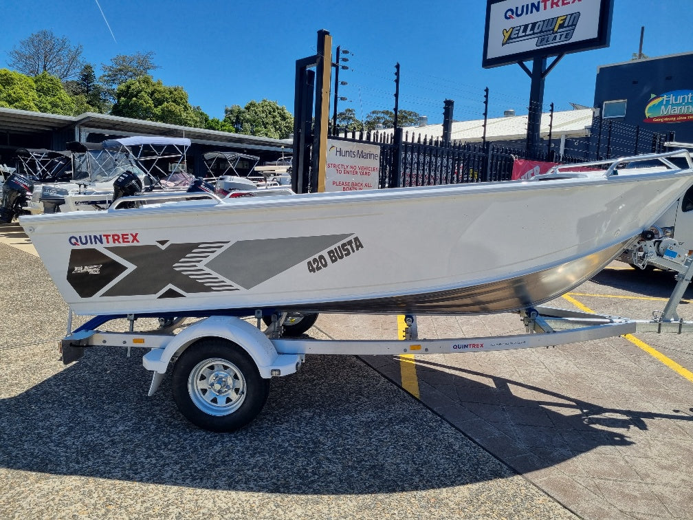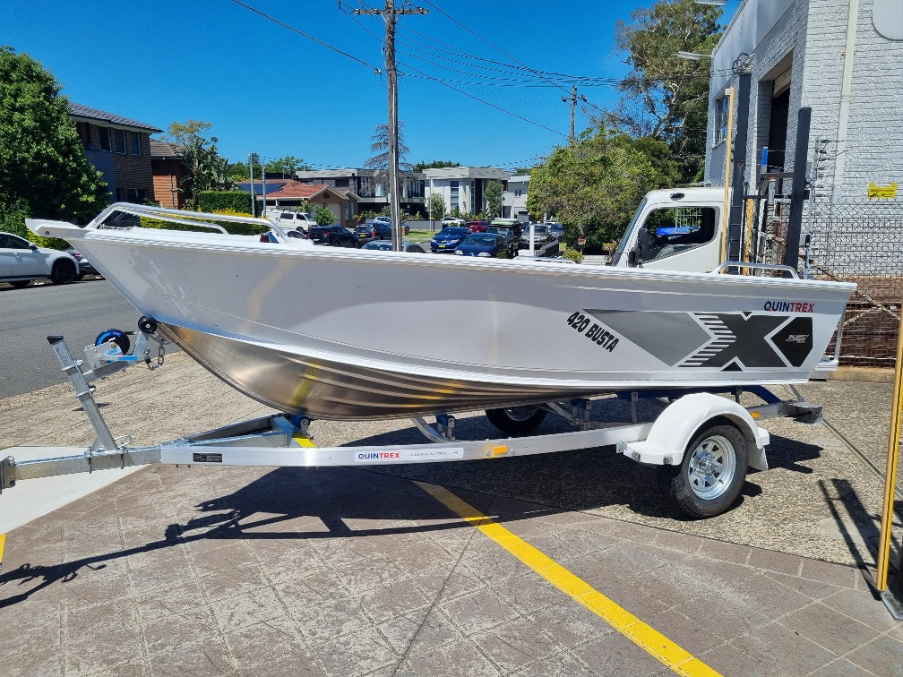 Just arrived. Quintrex 420 Busta powered by a Yamaha 40hp 4 stroke with trim and tilt and electric start all fitted on the Quintrex alloy trailer. One of our most popular packages. Options fitted and included are: