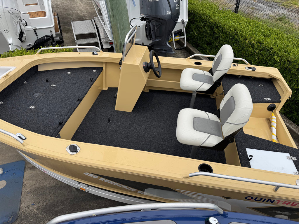 Quintrex 420 Renegade SC, Powered by a Yamaha 50hp four stroke outboard motor, fitted to a Quintrex Aluminium trailer, Package includes all standard specifications plus