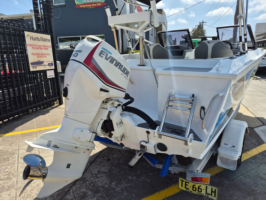 2023 YAMAHA 40HP 4 STROKE 41 HOURS. 2018 TELWATER ALLOY TRAILER. 1994 Quintrex 420 Breezeabout powered by a 2023 Yamaha 40hp 4 stroke with only 41 hours use all fitted on a 2018 Telwater alloy trailer with spare wheel Features include Canopy, Raymarine Dragonfly 4" Sounder / GPS with maps, 6 Rod holders, Navigation lights, Bilge pump, Windscreen grabrail, Side pockets. All of our used boats are thoroughly checked before trade in and we service the motor and trailer before purchase. A 3 month warranty is included with all our used boats. Enclosed waters safety gear and balance of registrations included. Guaranteed title. This boat is on display at our Sydney store.