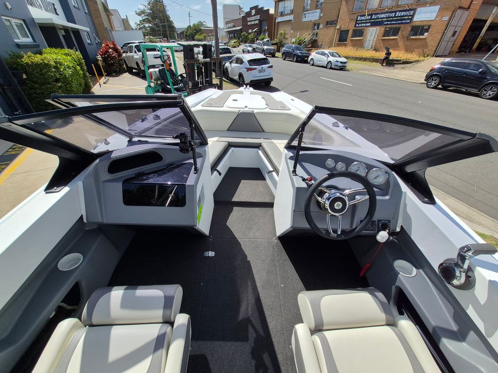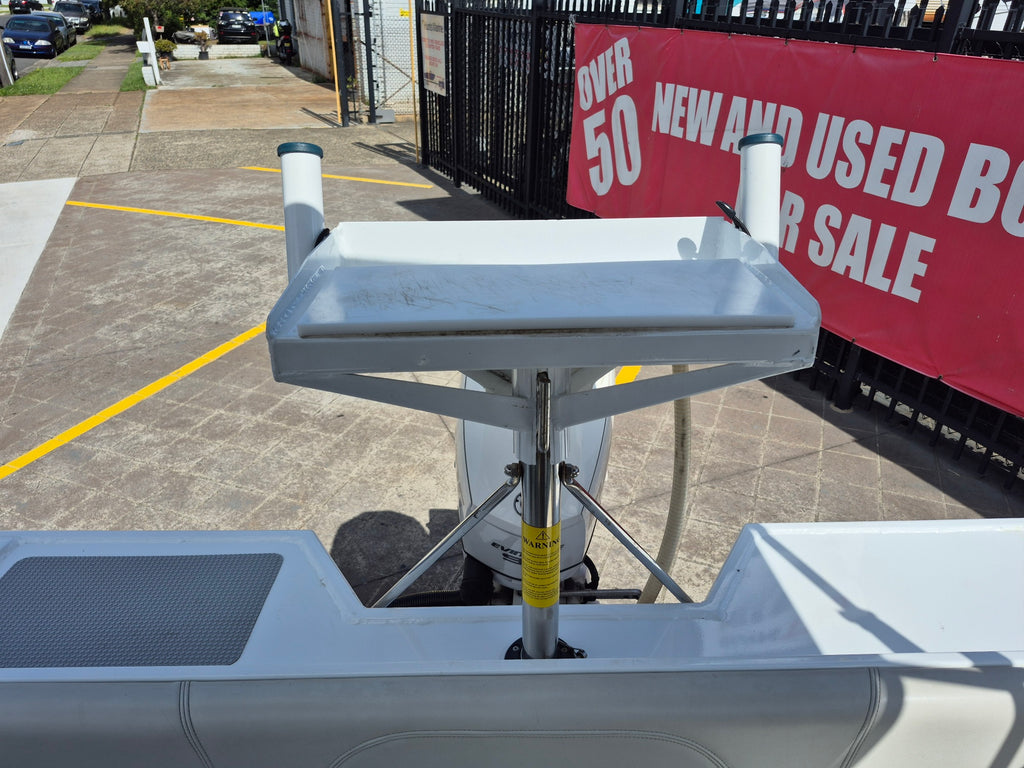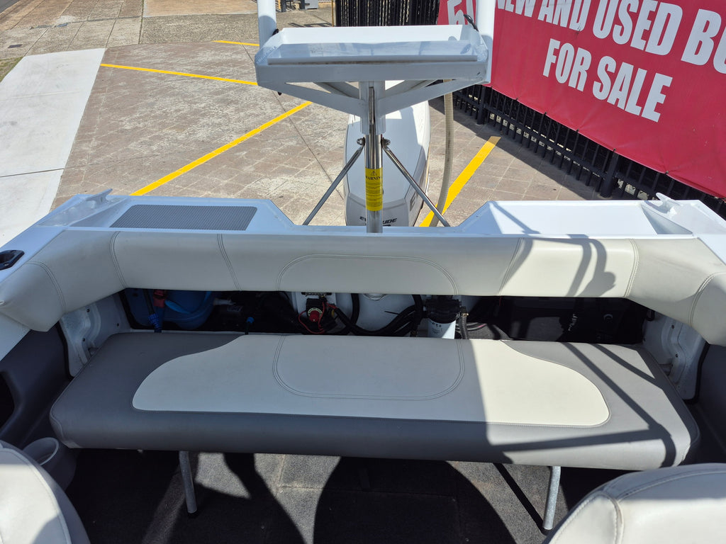 2018 Quintrex 510 Freestyler Bowrider powered by an Evinrude E-TEC 90hp with only 95 hours use all fitted on a Telwater alloy trailer. Features include Bimini with envelope, Lowrance HDS 7 Live Sounder / GPS with maps, Stainless steel Ski pole, Bait cutting board to suit Ski pole, Freshwater storage with shower, Fusion stereo with 2 speakers, Upgraded Steering wheel, Maritime seats, Bilge pump, Navigation lights, Battery isolation switch. All of our used boats are thoroughly checked before trade in and we service the motor and trailer before purchase. A 3 month warranty is included with all our used boats. Enclosed waters safety gear and balance of registrations included. Guaranteed title. This boat is on display at our Sydney store.