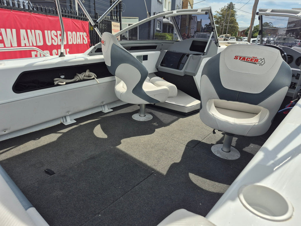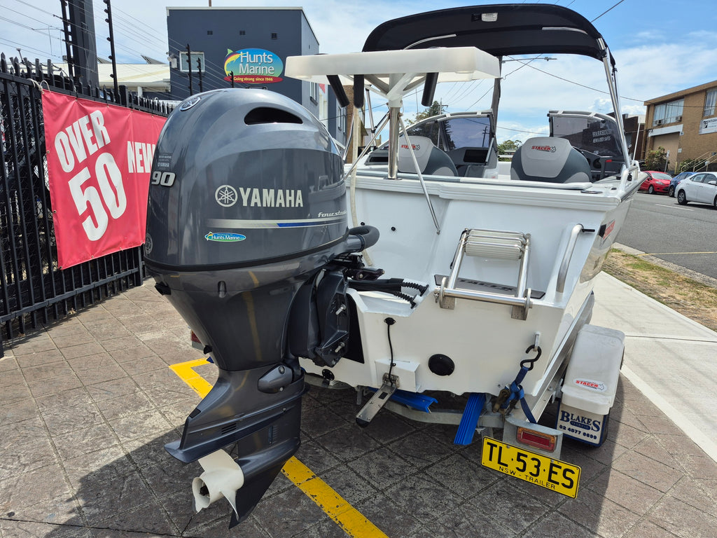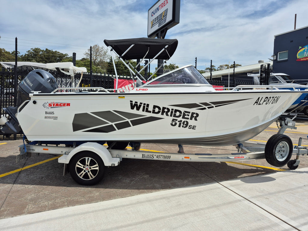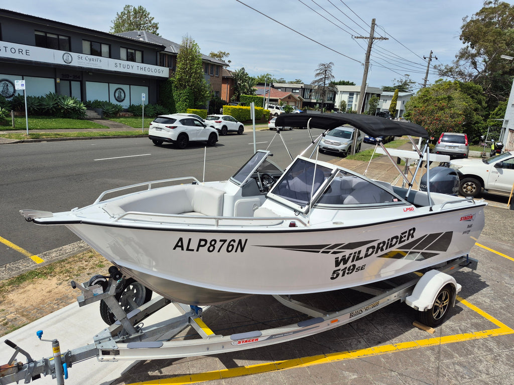 LATE MODEL BOWRIDER WITH LOW HOUR YAMAHA 4 STROKE 2022 Stacer 519 Wildrider SE Bowrider powered by a Yamaha 90hp 4 stroke with only 60 hours use all fitted on a Telwater alloy trailer with spare wheel. Features include Bimini with envelope, Bow cover, Custom made all over cover, Maritime seats, Bunk infill and cushion, Cockpit table, Ski pole with bait cutting board, Berley bucket, Lowrance Hook 7 GPS / Fishfinder, Fusion stereo with 2 speakers, VHF Marine radio, 12 volt outlet, Hydraulic steering, Upholstered side pockets, Cockpit lights, Tilt adjustable steering, Bilge pump, Navigation lights, Battery isolation switch. Package still covered by manufacturers warranties, Enclosed waters safety gear and balance of registrations included. Guaranteed title. This boat is on display at our Sydney store.