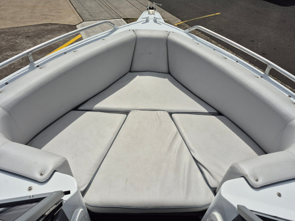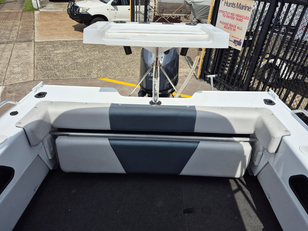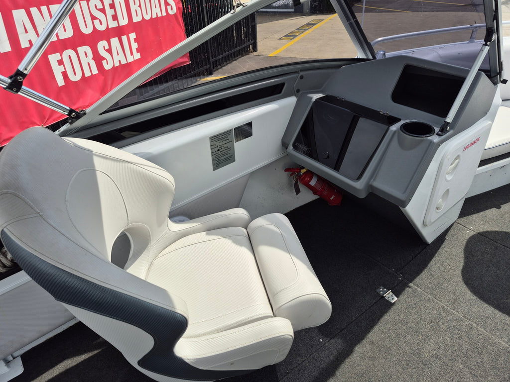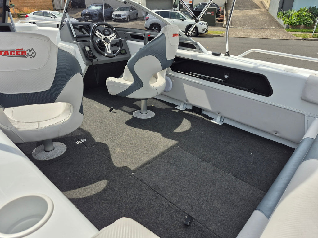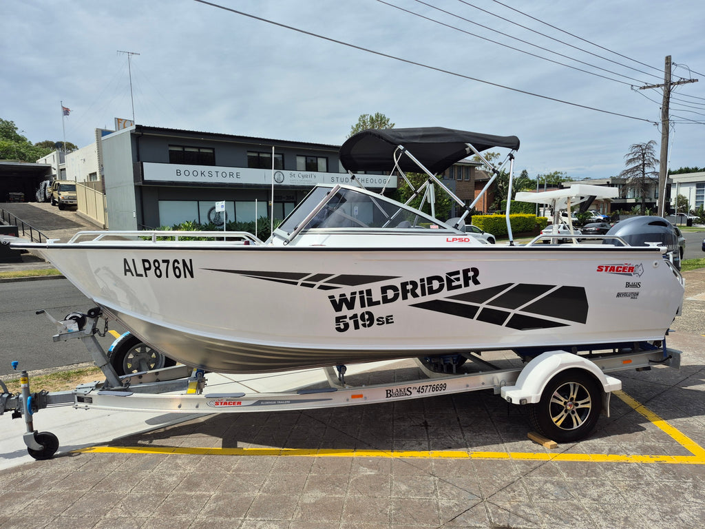 LATE MODEL BOWRIDER WITH LOW HOUR YAMAHA 4 STROKE 2022 Stacer 519 Wildrider SE Bowrider powered by a Yamaha 90hp 4 stroke with only 60 hours use all fitted on a Telwater alloy trailer with spare wheel. Features include Bimini with envelope, Bow cover, Custom made all over cover, Maritime seats, Bunk infill and cushion, Cockpit table, Ski pole with bait cutting board, Berley bucket, Lowrance Hook 7 GPS / Fishfinder, Fusion stereo with 2 speakers, VHF Marine radio, 12 volt outlet, Hydraulic steering, Upholstered side pockets, Cockpit lights, Tilt adjustable steering, Bilge pump, Navigation lights, Battery isolation switch. Package still covered by manufacturers warranties, Enclosed waters safety gear and balance of registrations included. Guaranteed title. This boat is on display at our Sydney store.