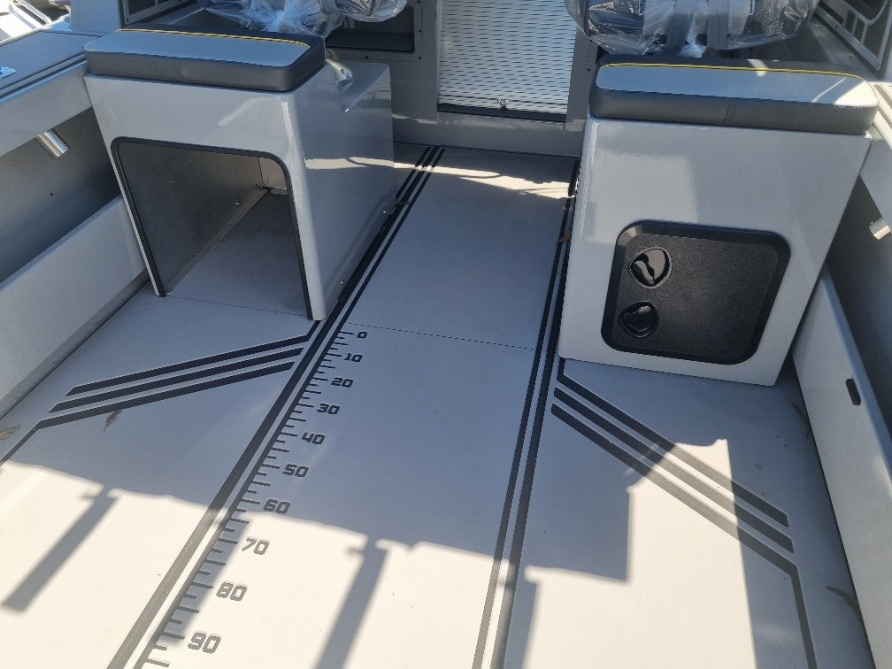 Just arrived and about to have the engine fitted. Yellowfin YF-70 Extended Cabin powered by a 250hp Yamaha with Digital throttle and shift and hydraulic steering, digital gauges and stainless steel prop. It's mounted on the Yellowfin Tandem axle Alloy trailer with Spare Wheel and carrier and Catch N Release. Options fitted and included in the price are the: